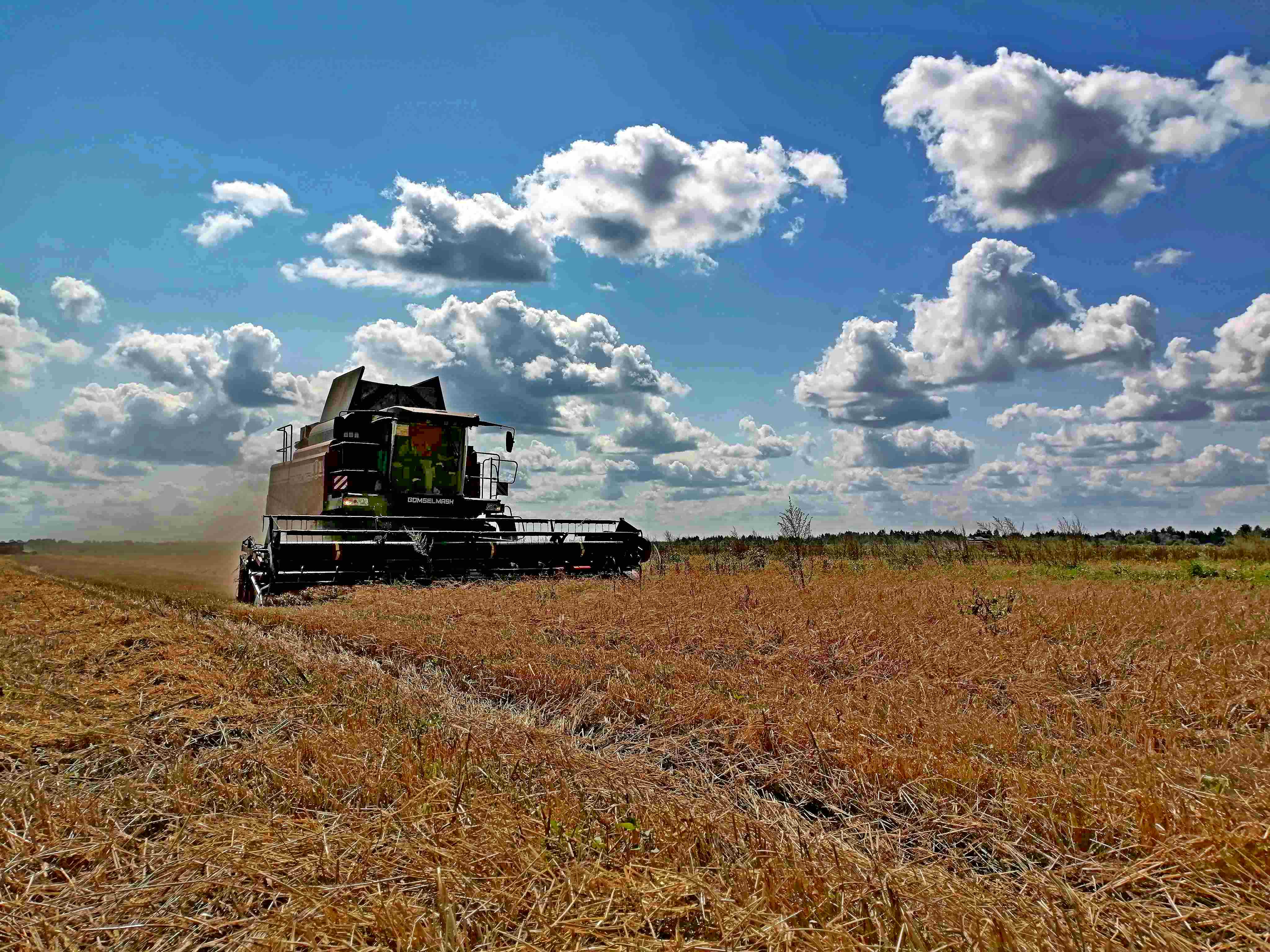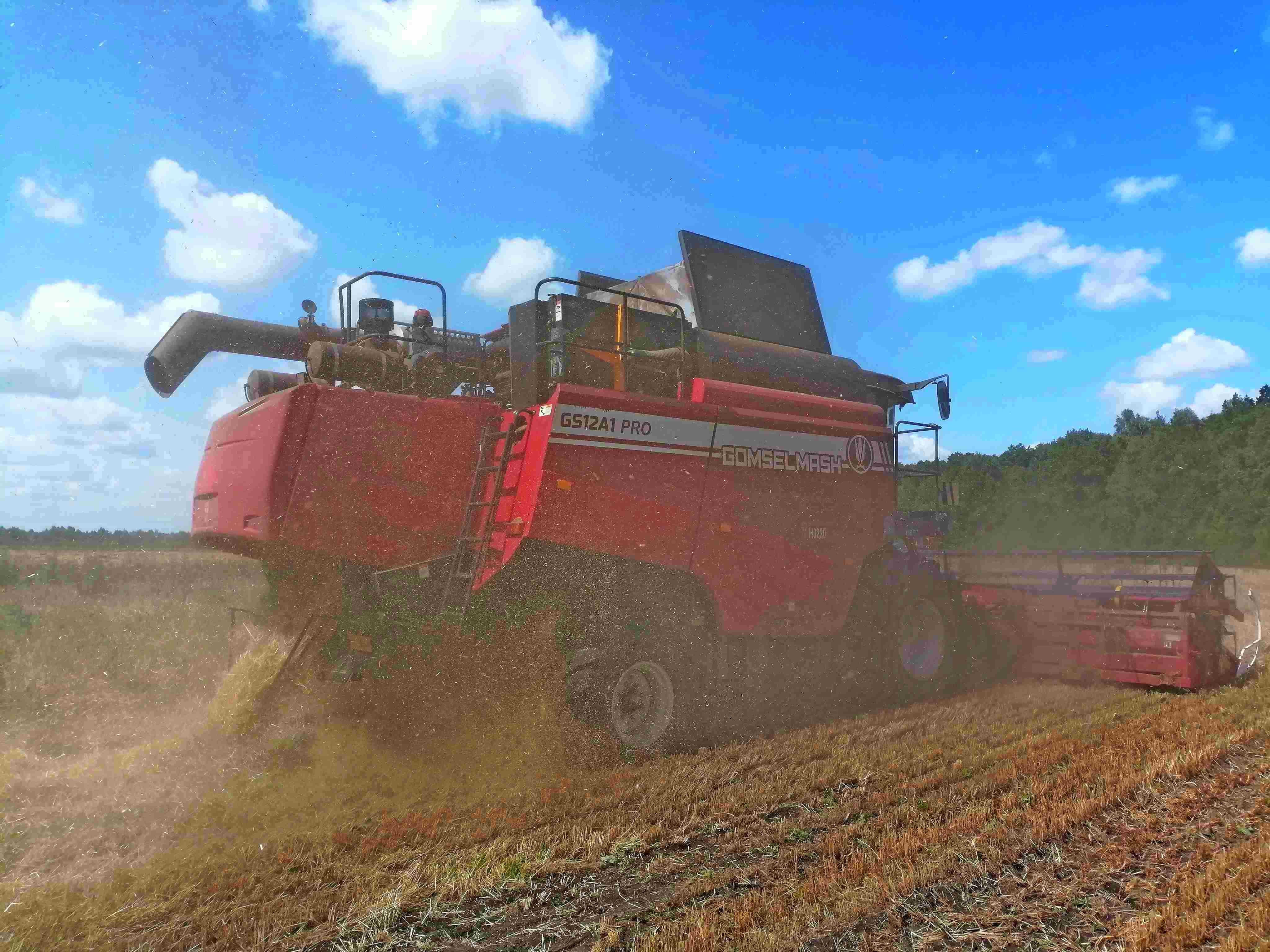Несмотря на срес от заморозков, растения показали отличную устойчивость благодаря гуминовому удобрению Гумат Рост. Комбайны аккуратно собирают урожай, минимизируя потери зерна и обеспечивая высокое качество собранного материала.